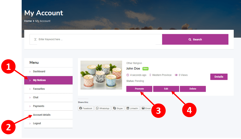 This is where you can promote your notice. Simply click “Promote” and you will be taken to the payment options.